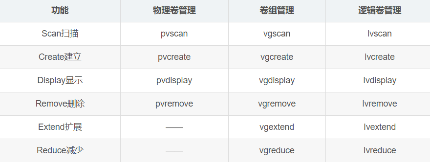 二、LVM的管理命令