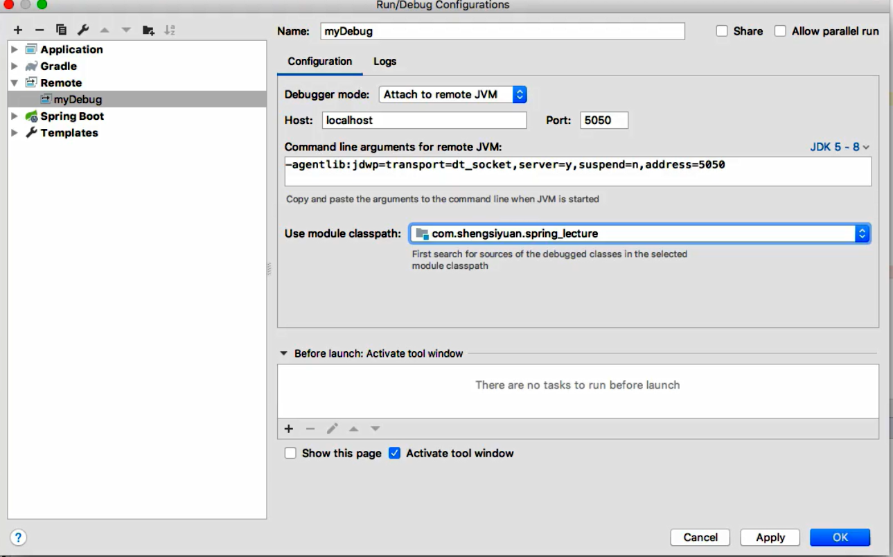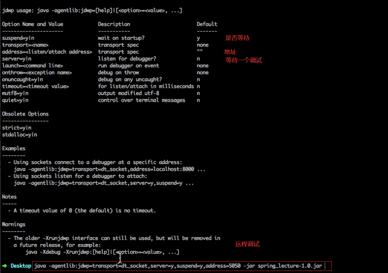 java -agentlib:jdwp=transport=dt_socket,server=y,suspend=y,address=5050 -jar demo-0.0.1-SNAPSHOT.jar