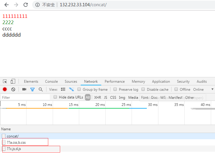 也就是说,如果页面上有大量的请求,请求会排队。那么对于一些比较复杂的网站,可能会有很多的css和js静态文件,如果按照默认的方式,会导致页面打开速度很慢,时间都浪费在了请求静态资源上了。针对这种现象,阿里团队基于nginx开发了nginx-http-concat模块,可以在服务器端将多个静态文件合并,然后再一起返回给前端。这样就大大的减少了请求的次数,提高了相应速度。