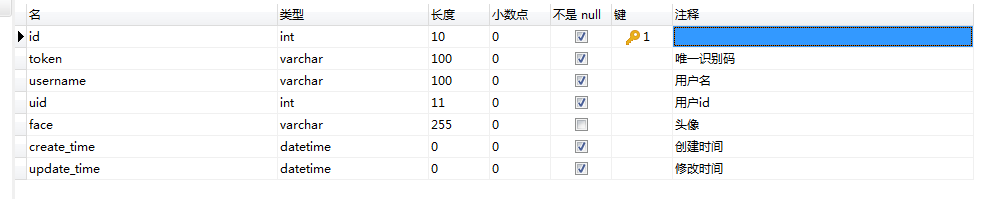 1、首先创建数据库表login_token