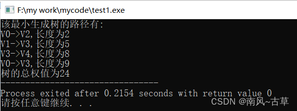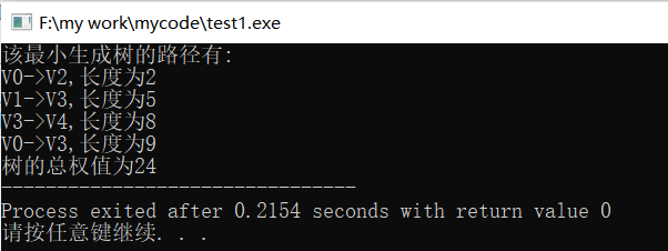 printf("该最小生成树的路径有:\n");