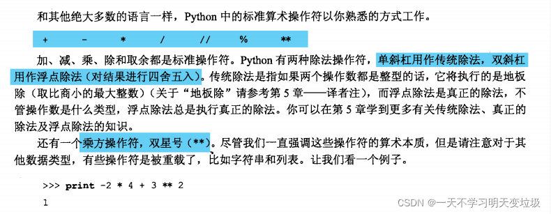 Python3中/表示真除,%表示取余,//结果取整;Python2中带上小数点/表示真除,%表示取余,//结果取整。