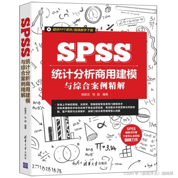 相关学习资料推荐杨维忠、张甜编写的《SPSS统计分析商用建模与综合案例精解》和《Stata统计分析商用建模与综合案例精解》,清华大学出版社今年8月出版的新书,简直就是为职场人士和即将踏入职场的大学生量身定做的参考书,这两本书分别将SPSS、Stata各类建模技术综合应用于商业运营实践,聚焦商业热点,有效解决市场调研、市场营销、客户满意度调研、连锁门店分类管理、客户关系分级维护等核心问题,提升商业价值和核心竞争力,满足职场人士和统计分析相关专业师生进行统计分析和数据建模的需求。这些案例都是作者基于自身从业经历,在大量实际调研的基础上改编的,非常贴近实际生活,也非常便于直接吸收应用。两本书都不难学,都是结合实际工作中的案例,相信您看了一定会有收获!