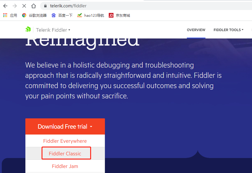2、下载Fiddler4,点击Download Free trial>>Download Classic,填写资料即可下载