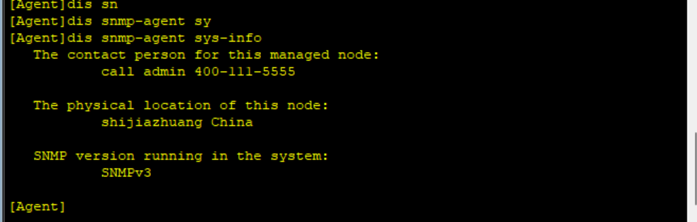 [Agent]snmp-agent sys-info contact call admin 400-111-5555
