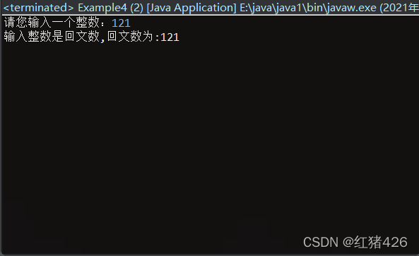 System.out.print("输入整数是回文数,回文数为:"+result);