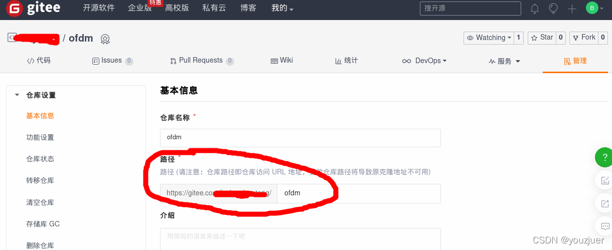 需要的是画出来的路径,并且需要在最后加一个后缀名".git"