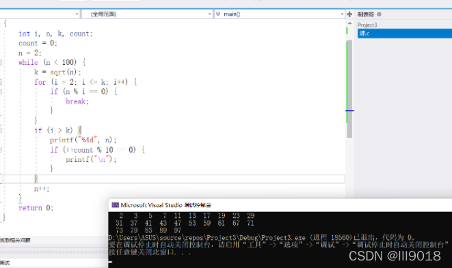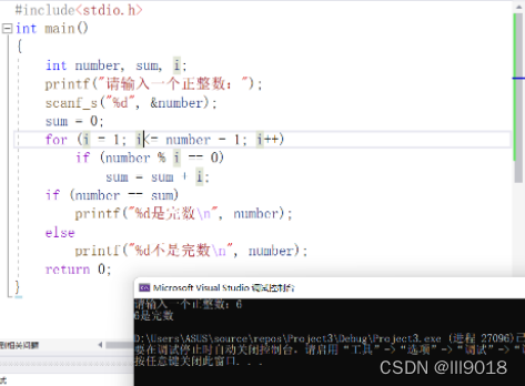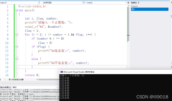 上述算法中,若number较大,且为素数时,for循环重复的次数会很多。这时可以进行优化:使i从2~sqrt(number),即只需i<=sqrt(number),减少for循环重复的次数。
