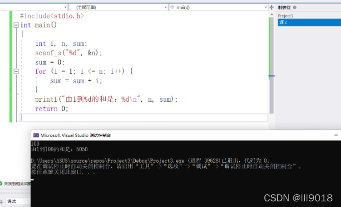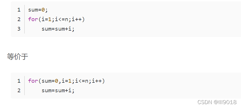 循环体语句sum=sum+i;放到表达式3中,与i++构成一个逗号表达式,此时循环体语句实际为一个空语句“;”(单独一个“;”称为空语句)。