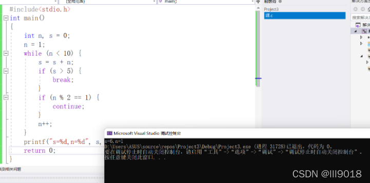 (2)本例主要是continue语句的使用示例,也可以不使用continue语句。