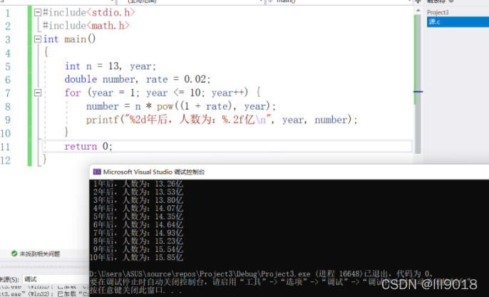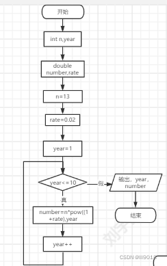 (2)程序中的for循环控制语句中,年份year的初始值为1,终值为10,增量用year++实现。