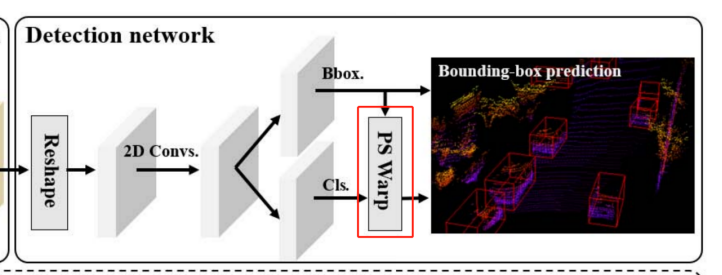 为了更好的联立classification branch与BBox branch,作者借鉴了PSRoIAlign的方法,提出PS Warp的联立方法。PS Warp是为了联立BBox的同时,使Cls得到的预测分数更加精确。