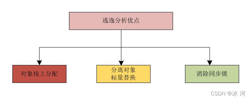 逃逸分析的优点总体上来说可以分为三个:对象可能分配在栈上、分离对象或标量替换、消除同步锁。我们可以使用下图来表示。