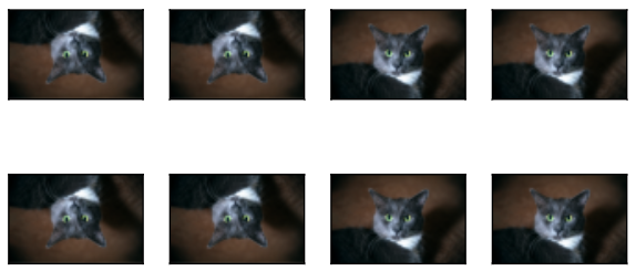 apply(img,torchvision.transforms.RandomVerticalFlip())