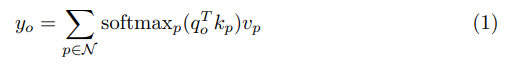 其中,N_{mxm}(o) 是以位置 o = (i, j) 为中心的局部 mxm 的正方形区域,可学习向量