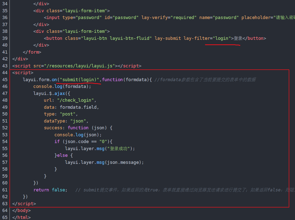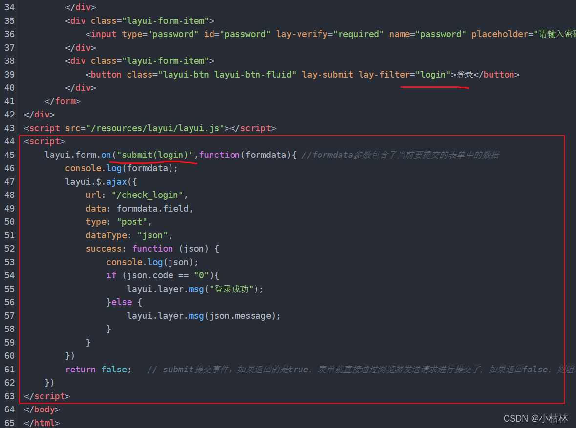 (1)这个案例就是因登录为例,演示了Ajax请求;(即,这个就不是页面就绪函数的形式了)