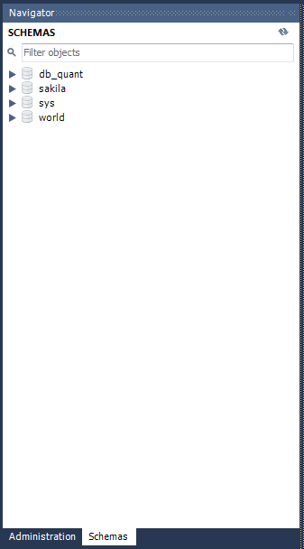 第一次登录需要输入密码,登录后就可以查看本机数据库内容,导航窗口的Schemas标签内容如下:
