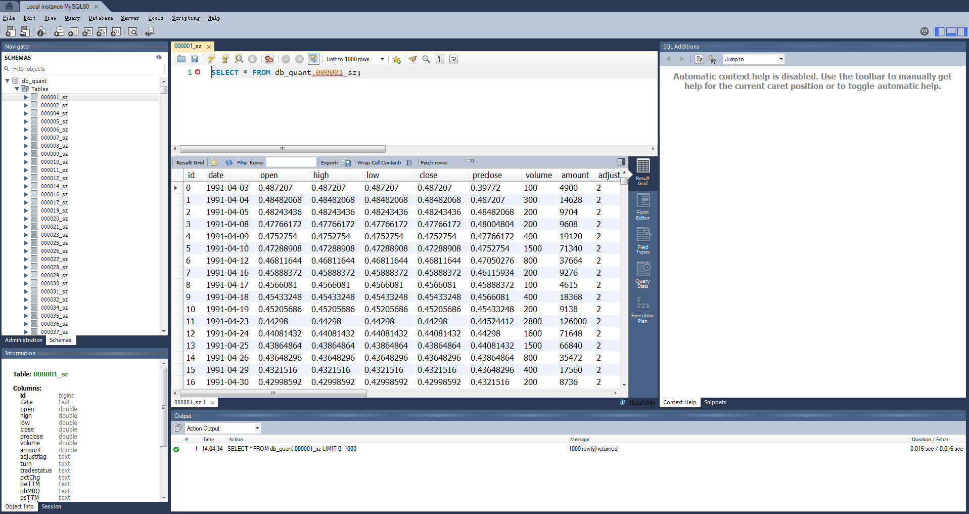 前文介绍了MySQL的安装和配置过程,本文记录将股票数据写入到MySQL的过程。