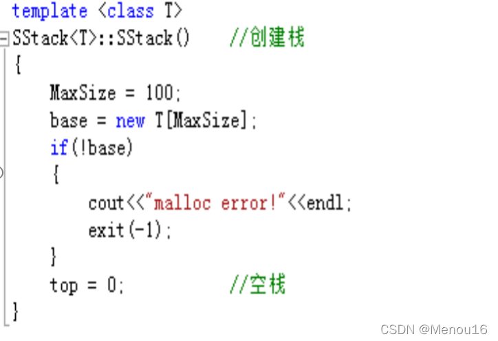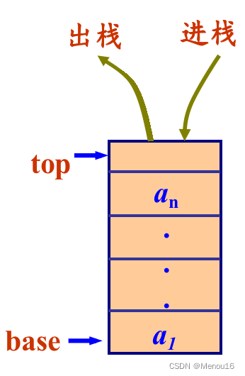 注意,此处的top栈顶指针是指向栈顶元素的下一个元素,也有一种说法是指向栈顶元素,两种都可,此处采用前者