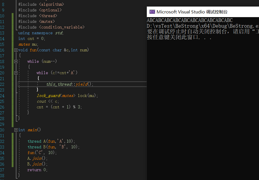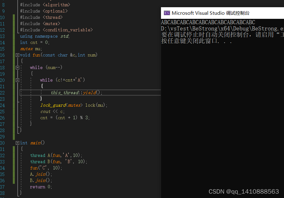 总结:fun(100, "father");要放在join之间,子线程A先于函数执行前创建了,主要是要让主线程先跑起来,this_thread::yield();使当前线程停止,让另外线程启动。