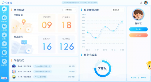 叮当码编程智能教学平台(edu.dingdangcode.com)为中小学编程课开设提供丰富教学资源、高度智能的教学工具