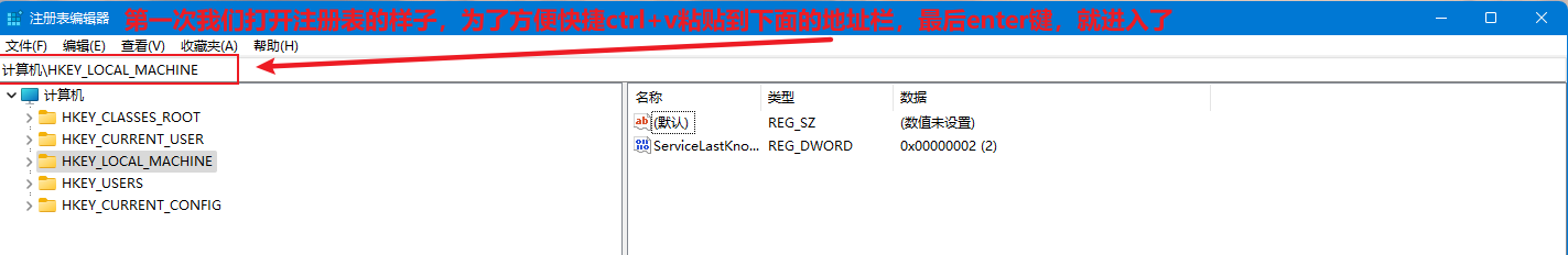 5、打开注册表,复制该路径进入,直接复制粘贴到地址栏