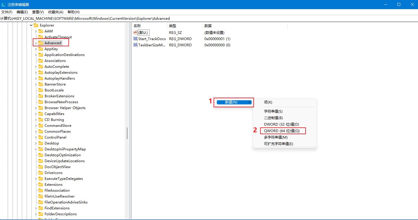 HKEY_LOCAL_MACHINE\SOFTWARE\Microsoft\Windows\CurrentVersion\Explorer\Advanced