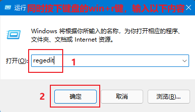4、接着使用键盘“win+r”打开运行窗口,输入“regedit”回车确定,就是打开了注册表