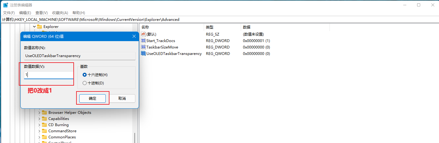 7、然后双击或者右击打开它,将它的值更改为“1”,再重启系统即可。