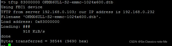 使用命令将.dtb 下载到内存的 0x83000000 地址: