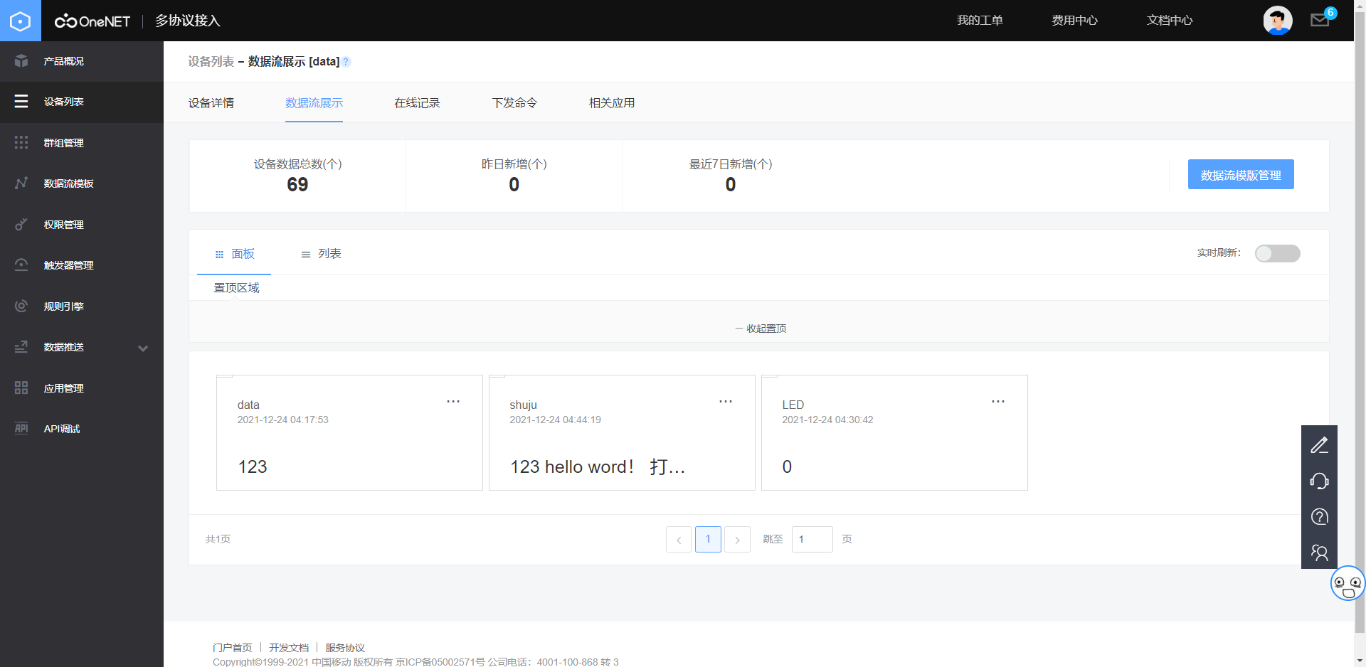 onenet端的配置