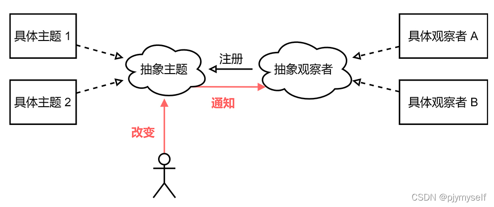 它是一个抽象类或接口,它包含了一个更新自己的抽象方法,当接到具体主题的更改通知时被调用。