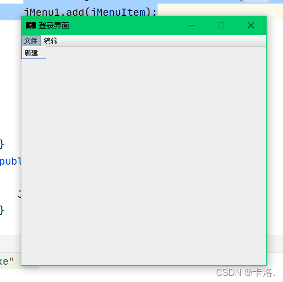 JMenuItem jMenuItem = new JMenuItem("新建"); jMenu1.add(jMenuItem);菜单操作效果图如下: