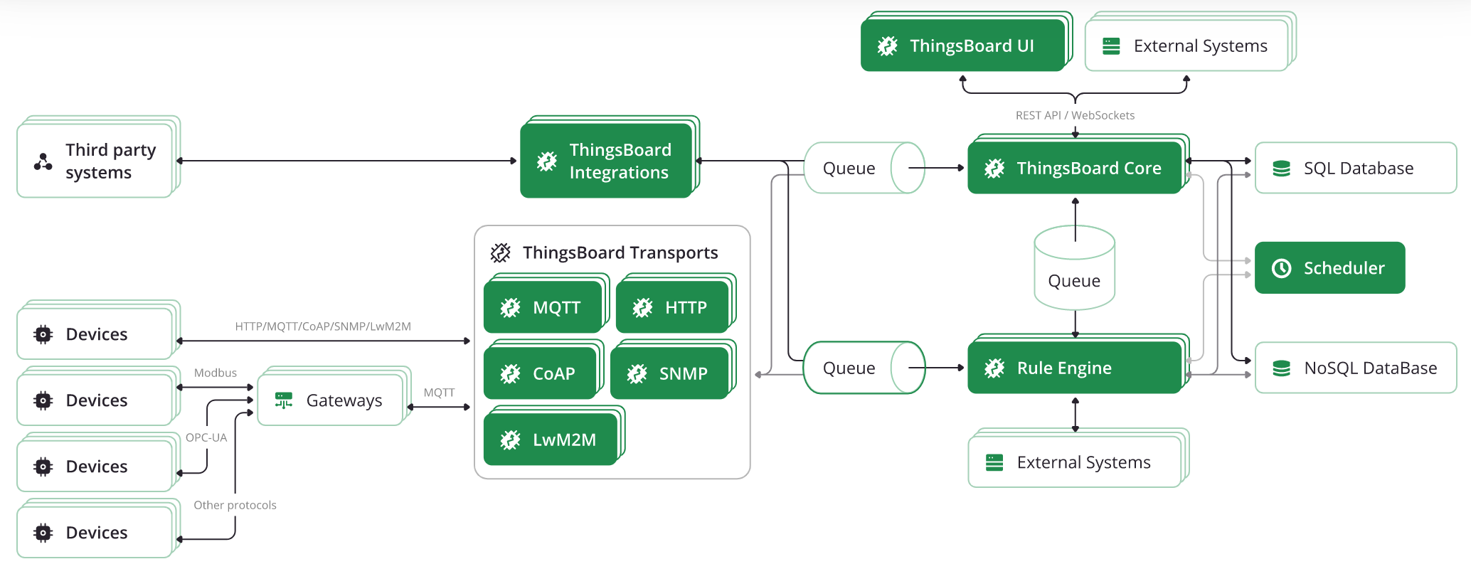 首先 ThingsBoard 微服务架构目前已经支持的 MQTT、HTTP、CoAP、SNMP、LwM2M等协议。但是一些厂商的数据是 TCP 私有协议并且高度定制化需要扩展 Transport 微服务的情况下需要定制化自己的 transport 。
