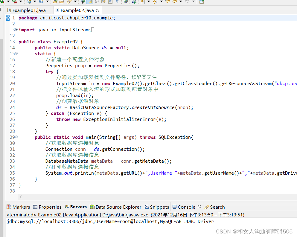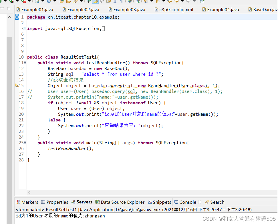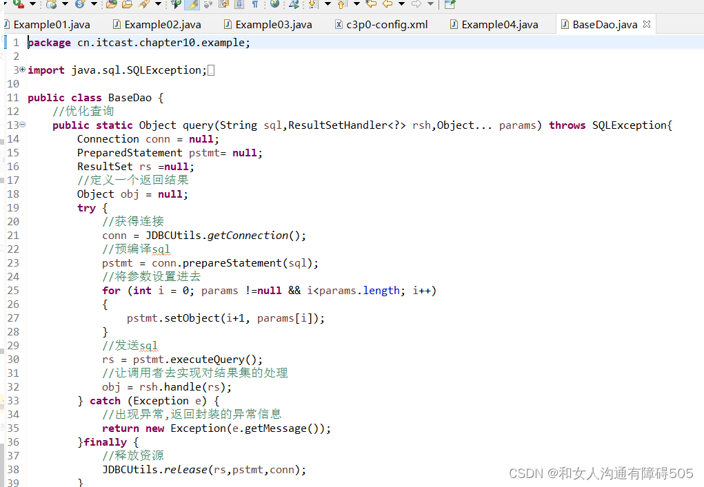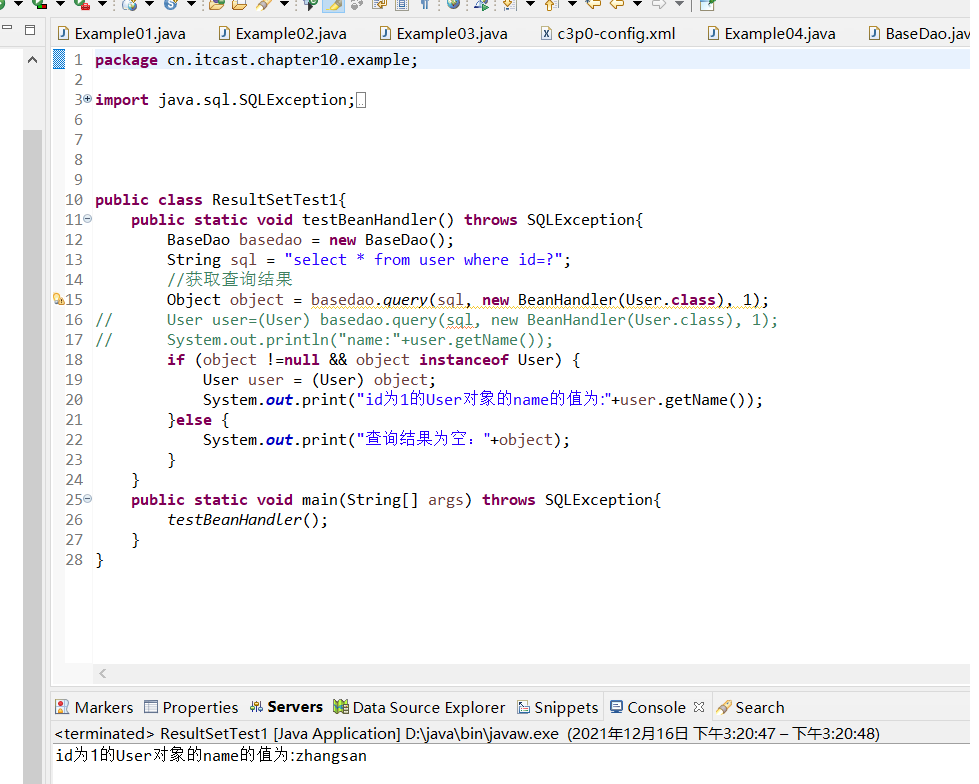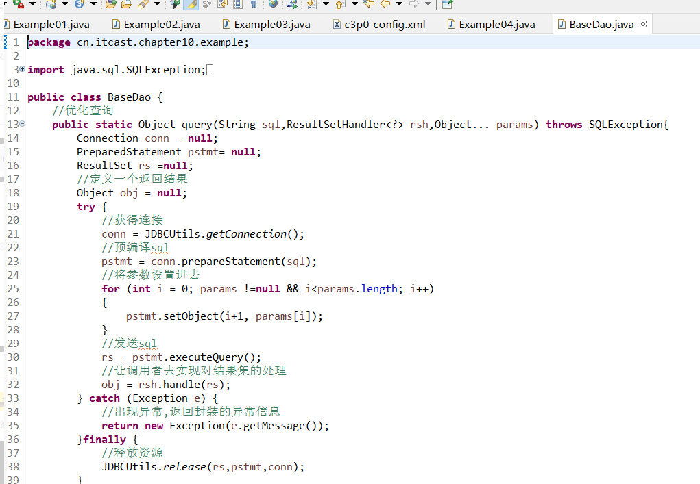 - 在Eclipse中创建一个名为chapter10的web项目,在项目chapter10中导入3个jar包,并发布到类的路径下,然后在项目的src目录下创建包,并在包下创建一个example01类