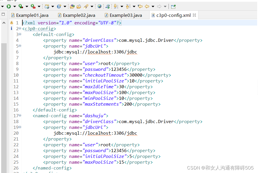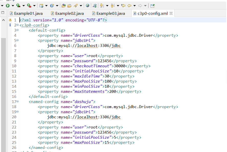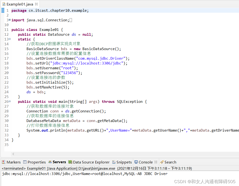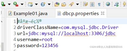 在chapter10项目中src目录下创建dbcpconfig.properties文件,该晚间用于设置数据库的链接信息和数据源的初始化信息
