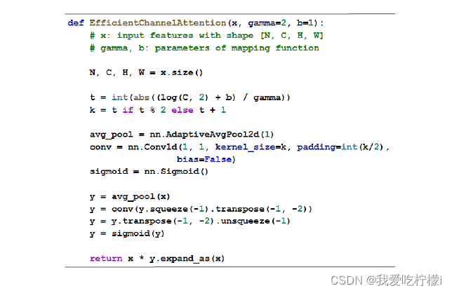 ECANet思考了SENet的缺点:先降维经过处理之后在映射到高纬度。作者认为尽管这种迂回策略减少了一定的参数。但是他破坏了通道与注意力权重之间的直接对应关系。