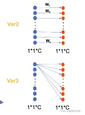var2是每个通道对应一个权重,var3是每个权重由前面的所有通道决定(类似于全连接层)