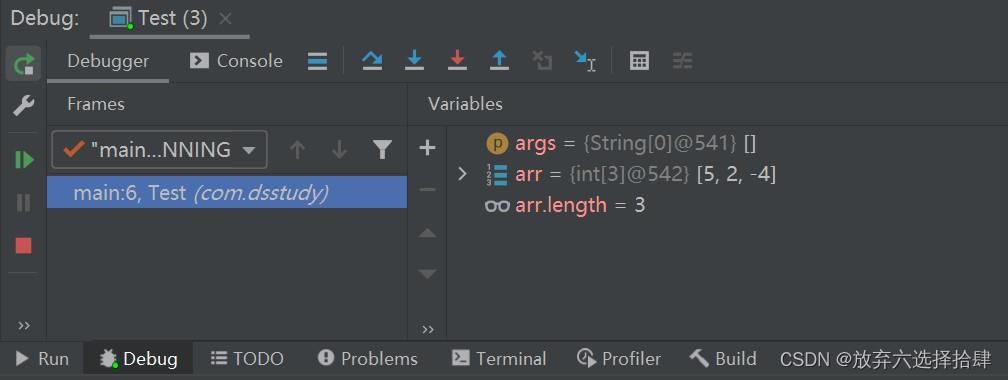package com.dsstudy; public class Test { public static void main(String[] args) { int[] arr={5,2,-4}; for(int i=0;i<arr.length;i++){ System.out.println("i="+i+" arr[i]="+arr[i]); } System.out.println("程序退出..."); } }