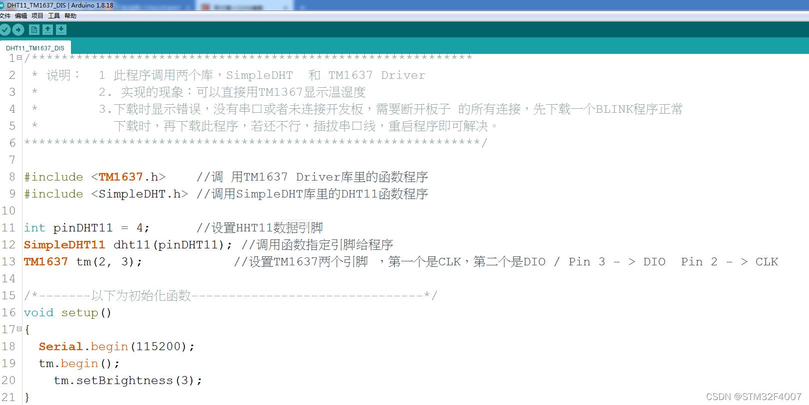 过程如下:参考了TM1637 Driver下的basic程序和SimpleDHT的程序,这个也是下载了很多后,才发现这两个最容易理解和处理,就它们了。