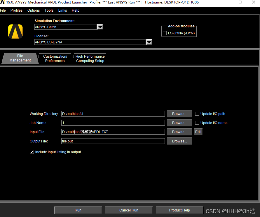 二、 在Simulation Enviroment中选择ANSYS Batch,Input File中选择已经写好的APDL命令流文件,其他按照自己情况选择