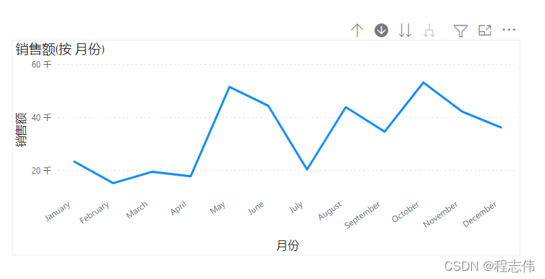 8. 在“字段”窗格中, 将“订单日期”字段拖动到各省份销售额柱形图下方的画布上, 然后将“销售额”字段拖动到“可视化”窗格下半部分的“值”设置项中, 再选择“折线图”可视化效果。
