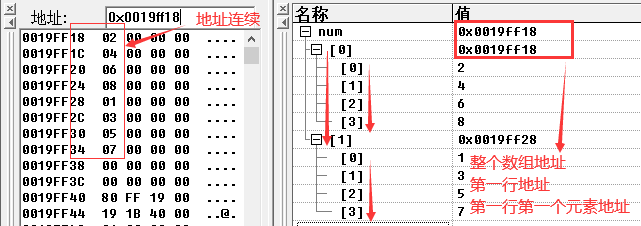 数组名:整个数组存放的位置也是数组第一行存放的位置也是第一行第一个元素存放的地址