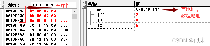 有序性:一行一行存,数组中的数据在内存中存放的地址是连续的