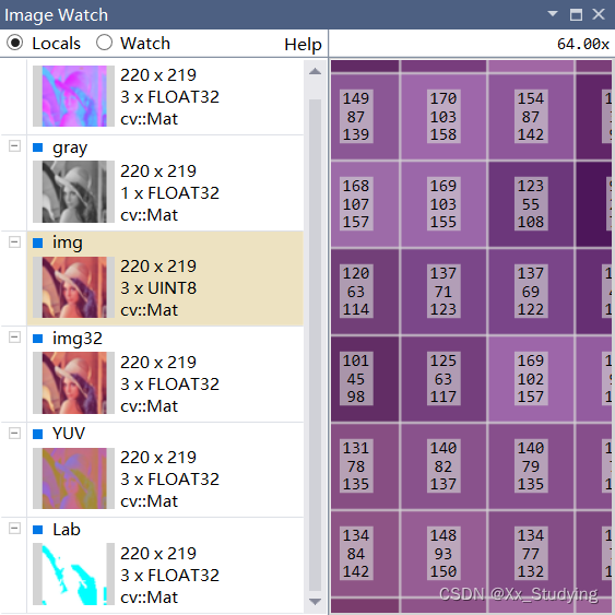 Mat gray, HSV, YUV, Lab, img32;