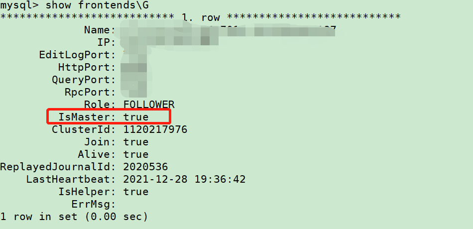 注:此处需要进master的http页面。如不确定集群哪台是master,可以show frontends查看IsMaster值为true的ip