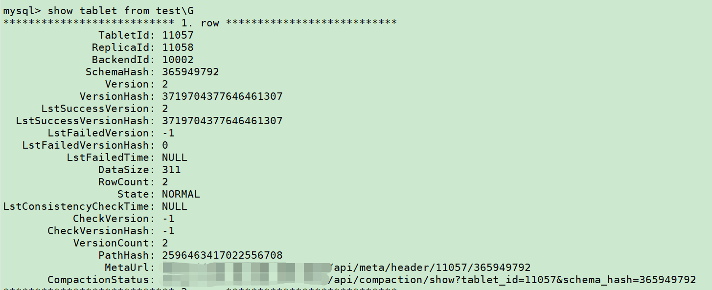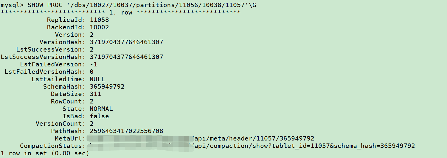 访问「CompactionStatus」中的 URL,会展示分片的几个副本(replica)的具体信息,包括可以查看每个副本更多元数据信息。