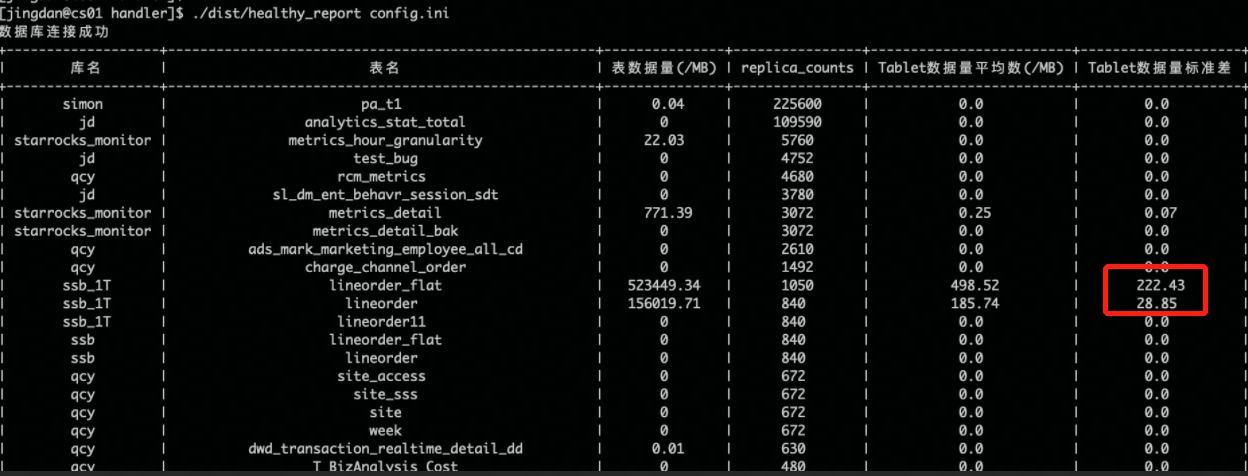 以上信息中关注下标准差那列,如果异常高,则表示该表需要重新选取hash键,建表不合理有严重的数据倾斜问题。