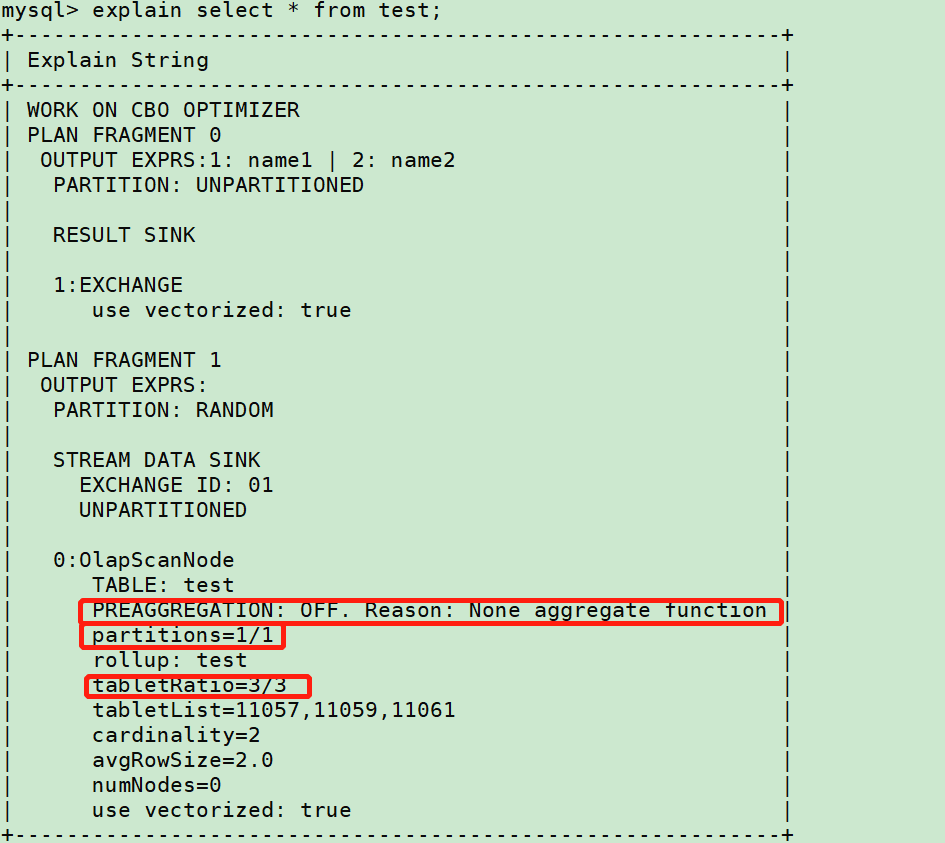 PREAGGREGATION 是 OFF 表⽰存储层必须聚合, 可以关注下 OFF的原因是否符合预期