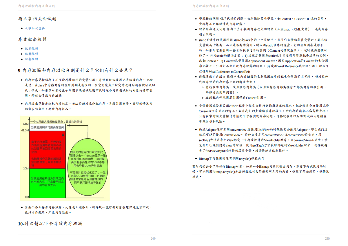 7、内存溢出和内存泄漏有什么区别?何时会产生内存泄漏?内存优化有哪些方法?